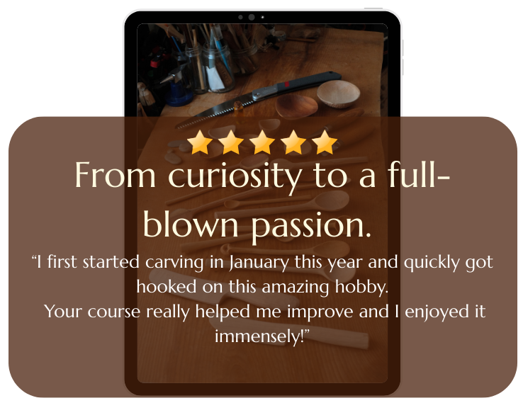 That’s why I created these courses—to give you a simple, enjoyable approach to woodcarving. Not just to create beautiful, eco-friendly objects, but to help calm the mind and soul in this hectic world.