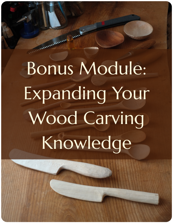 Meet your instructor and get a full overview of the courses. Learn about essential tools, types of wood, how to set up your workspace, and start your first hands-on project: carving a simple butter knife—guided by a calming, start-to-finish video (no talking, just the craft).