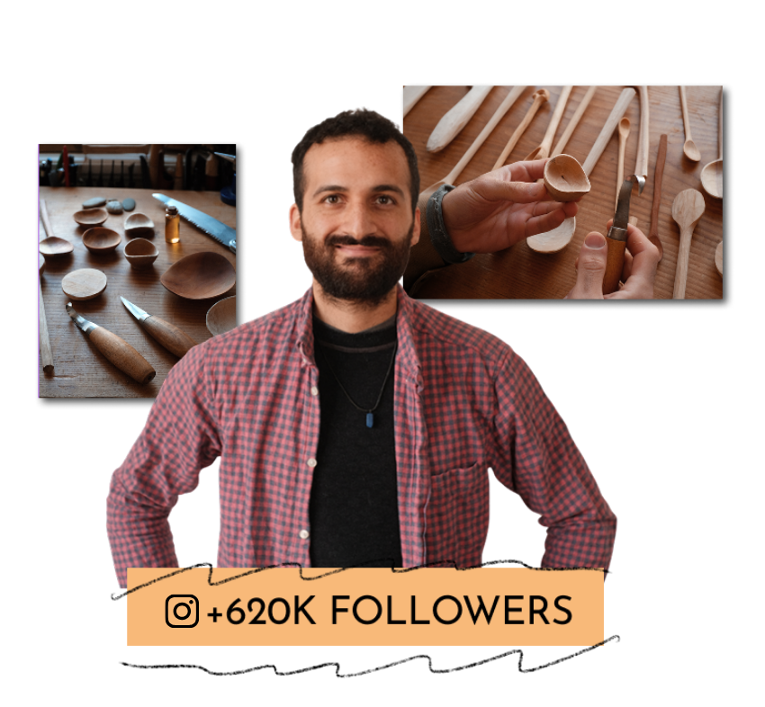 Recently, my carving videos went viral with over 300 million views and more than 600,000 followers, revealing the craft’s power to calm the mind. Watching is one thing, but carving is meditative, grounding, and deeply rewarding. That’s why I created these courses—to offer a simple, enjoyable approach not only to create beautiful, eco-friendly objects, but to help calm the mind and soul in this hectic world.